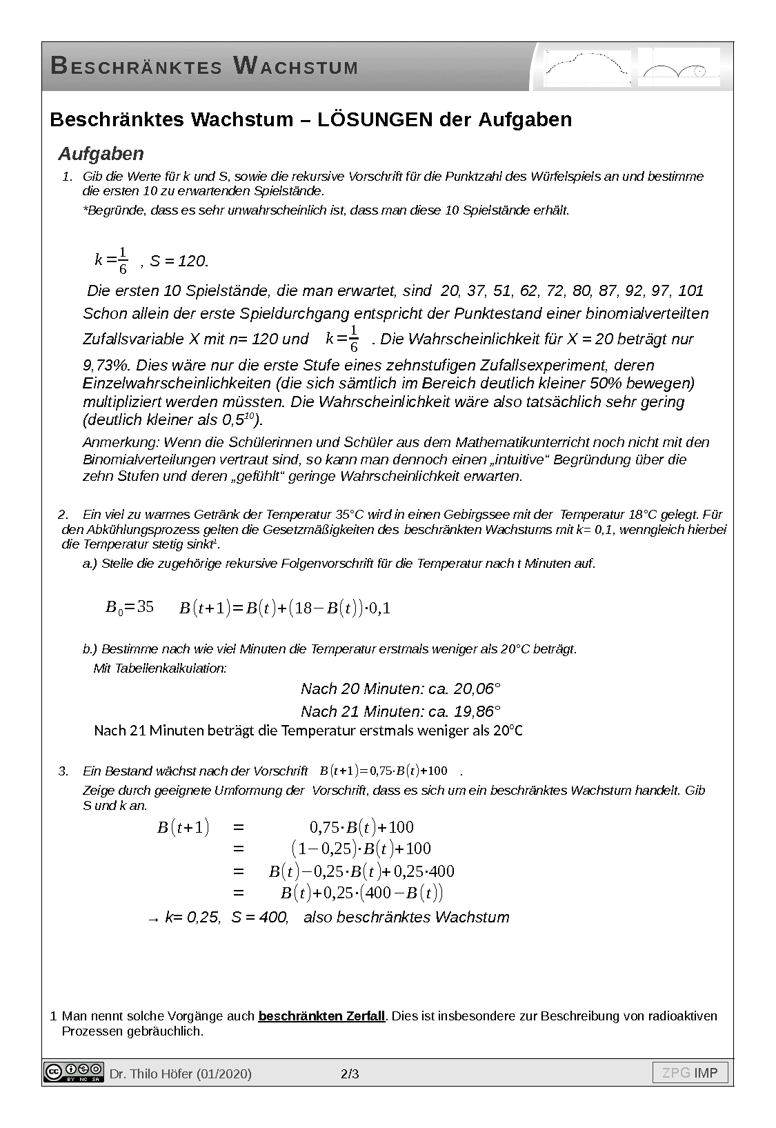 Beschränktes Wachstum: V1: Lösung: Herunterladen [odt][245 KB]