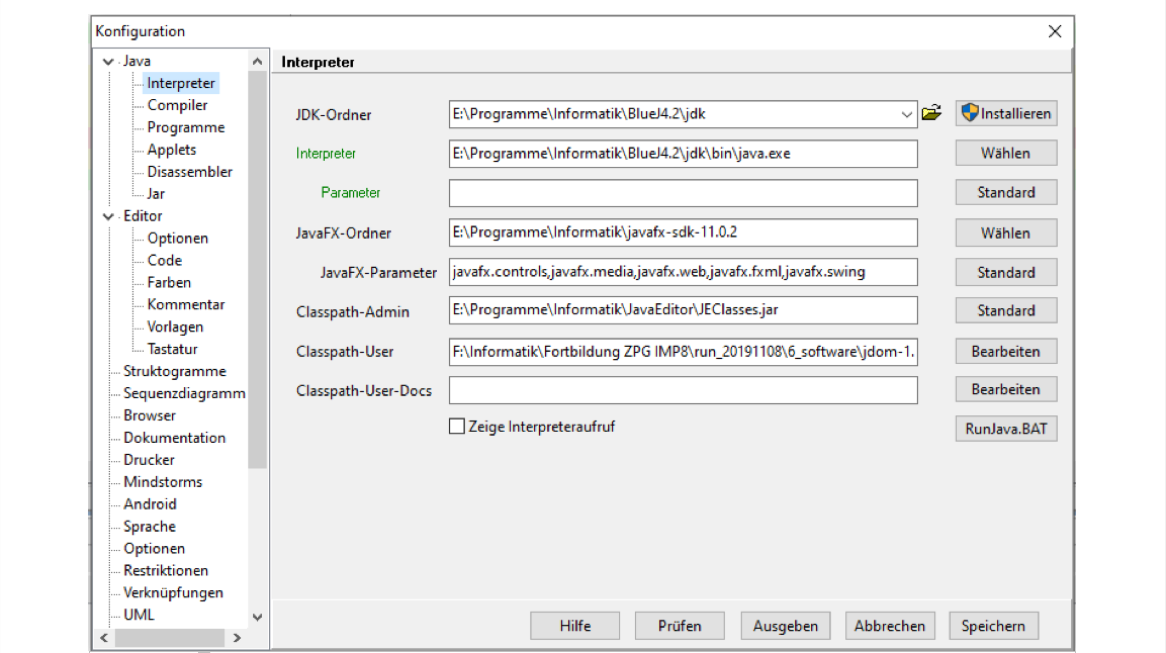 Abbildung 1: Konfigurationsfenster des Java-Editors von ZPG Informatik [CC BY-NC-SA 3.0 DE], aus 4_installation_graphentester.odt