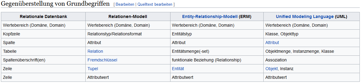 Gegenüberstellung von Grundbegriffen