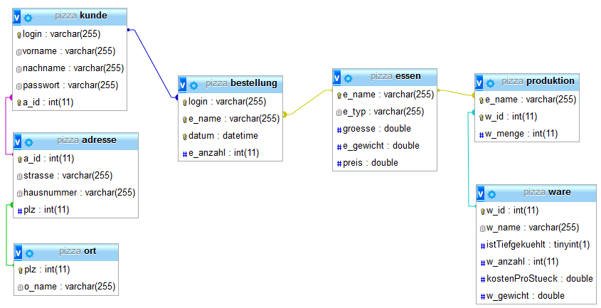 Klaasendiagramm: PIZZA-Datenbankmodell, Zechnall 2017