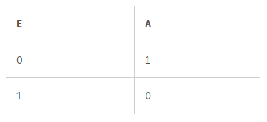 Zum Schluss wollen wir die Potenziale noch in logische Werte übersetzen. Bezeichnen wir das Eingangssignal mit E und das Ausgangssignal mit A, dann erhalten wir für die Schaltung die folgende Wahrheitswert-Tabelle: