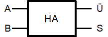 Diese Schaltung nennt man einen Halbaddierer und stellt sie durch das folgende Symbol dar: