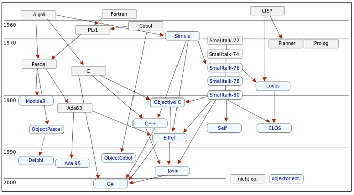 Historie der Programmiersprachen, History_of_object-oriented_programming_languages.svg von Nepomuk Frädrich [CC BY-SA 3.0] via Wikimedia Commons