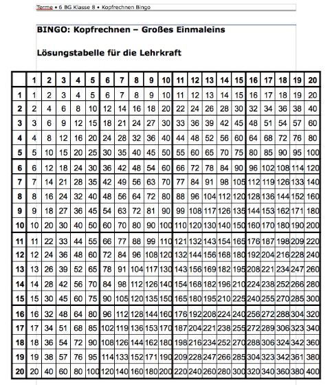 Kopfrechnen BINGO: Herunterladen [pdf] [331 KB]