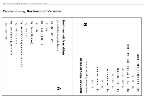 Rechnen mit Variablen AB: Herunterladen [pdf] [34 KB]