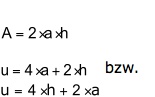 Welchen Flächeninhalt haben zwei gleich große nebeneinander liegende Rechtecke mit den Kanten a und h? Wie groß ist der gesamte Umfang der nebeneinander liegenden Rechtecke? |