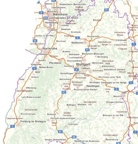 - Verschiedene sinnvolle Vorschläge sind denkbar, z. B. Rastatt, Pforzheim, Karlsruhe, Baden-Baden, ...