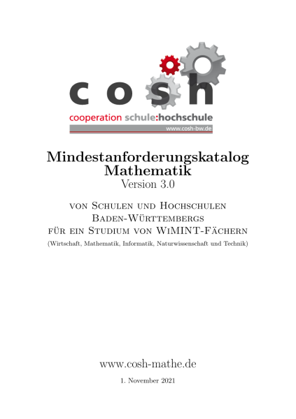 cosh hat im Oktober 2014 einen Mindestanforderungskatalog (MiAnKa) veröffentlicht, der Schülerinnen und Schülern, die ein Studium in einem WiMINT-Fach planen, über die zum Teil unterschiedlichen Anforderungsniveaus ausführlich informiert. Dieser wurde gemeinsam von Lehrenden aus Schule und Hochschule erarbeitet.