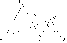 Beweisidee (1): Die Dreiecke ARQ und PRB sind nach dem KGS sws kongruent. Beweisidee (2): Die Drehung um R mit Drehwinkel 60° bildet B genau auf Q und P genau auf A ab. |