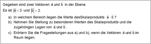 Zur Bearbeitung sind verschiedene Kompetenzen erforderlich. Der Schüler muss den Begriff des Skalarprodukts verstehen, er muss im hohen Maße Problemlösestrategien einsetzen, Strukturen erkennen und im Kontext argumentieren.