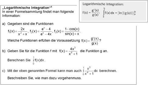 Die Aufgabe erfordert Textverständnis. Der Zusammenhang zwischen den Funktionen f und g muss hergestellt werden. Um die Formel anwenden zu können, muss ein vorgelegter Funktionsterm entsprechend analysiert werden. In Teil c) kann gezeigt werden, ob es gelingt, die Formel auf einen abgeänderten Funktionstyp zu erweitern.
