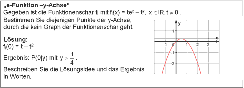 Die Aufgabe ist sowohl formal als auch bildlich vorgegeben. Man soll die Lösungsidee in eigene Worte fassen und dabei die mathematische Fachsprache verwenden. Damit zeigt man, ob er die Lösungsidee verstanden hat. Die Beschreibung erfordert aber auch noch weitere Fähigkeiten, nämlich das Fassen des Sachverhalts in Worten und das Verständnis, wie formale Ausdrücke und die bildliche Darstellung zusammenpassen. Man muss also auch in der Lage sein, die Darstellungsform zu wechseln und im Kontext zu argumentieren.