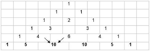 Das Abzählergebnis kann mithilfe des Pascalschen Dreiecks verdeutlicht werden: