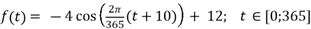 - Recherchieren Sie die Bedeutung der Begriffe Tag- und Nachtgleiche und treffen Sie aufgrund dieser Informationen eine Entscheidung, welcher Monat durch das Schaubild dargestellt wird. Der Verlauf von Tageslängen während eines ganzen Jahres kann annähernd durch eine trigonometrische Funktion f mit folgender Funktionsgleichung modelliert werden:
