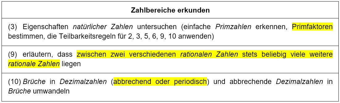 Bereits in den Klassen 5 und 6 müssen Zahlbereichserweiterungen für die Schüler nachvollziehbar durchgeführt werden. Dabei sollte auch altersgemäß auf das Permanenzprinzip eingegangen werden. Die Schüler sollen also erkennen, dass der neue Zahlbereich leistungsfähiger ist, aber dennoch alle bekannten Regeln und Gesetze weiter gelten.
