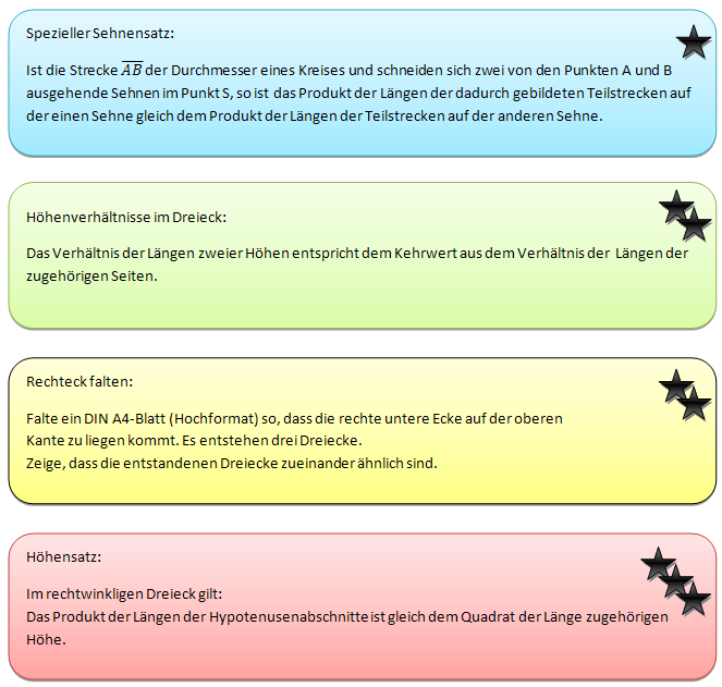 Wähle nun einen der Sätze auf der Rückseite aus, fertige eine Skizze an, formuliere Voraussetzung und Behauptung und führe den Beweis.