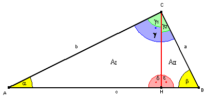 orthogonal zur Hypotenuse ist, in zwei Teildreiecke. Er nutzte die Ähnlichkeit