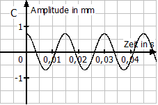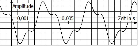 Der dominierende Grundton wird durch Obertöne mit geringerer Periodendauer und Amplitude vermischt. Bestimme aus dem abgebildeten Schwingungsbild die Periodendauer und die Frequenz des Grundtones.