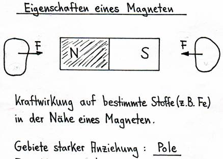 Der anschließenden Diskussion über die Vorgänge innerhalb des Materials kann mit einer geeigneten Modellvorstellung (Elementarmagnete) begegnet werden. Durch das Entlangstreichen werden die zunächst völlig ungeordneten magnetischen Bezirke in eine Vorzugsrichtung ausgerichtet. Dadurch entsteht im Draht nach außen ein Magnetismus, der zuvor wegen seiner Ungeordnetheit keine Wirkung hatte.
