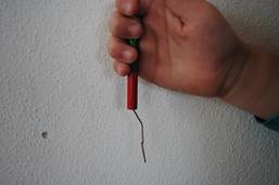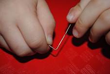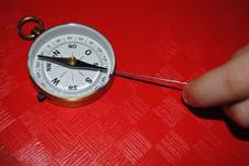 Brich anschließend von dem Draht ein kleines Stück ab. Untersuche mit Hilfe des Kompasses, ob durch die Teilung ein kleiner Drahtmagnet mit nur einer Art von Pol an beiden Enden entstanden ist. Welche Beobachtungen machst Du? Notiere deine Ergebnisse.