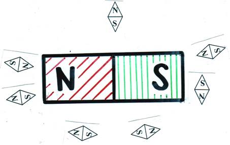 Erfinde eine entsprechende Zusatzaufgabe mit zwei Stabmagneten, die sich in einer beliebigen Lage zueinander befinden sollen. Zeichne dazu richtige und falsche Kompasse ein. Überprüfe die Situation eventuell experimentell.