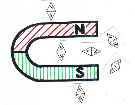 Bestimme nun (wie in Arbeitsauftrag 2) das Feldlinienbild eines Hufeisenmagneten.