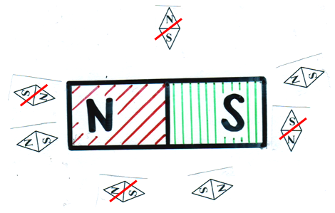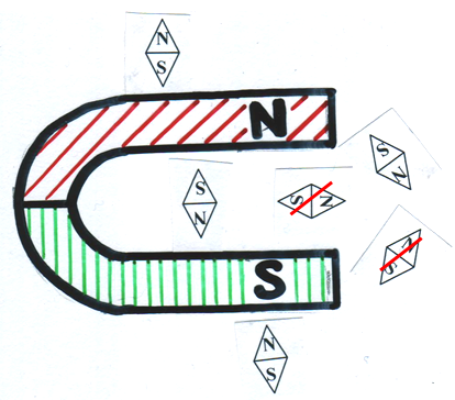 Lösung zum Arbeitsauftrag 2 (Eigenschaften des Feldlinienbildes eines Stabmagneten):