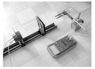 Hinzu kommen 2 Krokodilklemmen, Stativmaterial, 4 Kabel, Netzgerät und Widerstandmessgerät.
