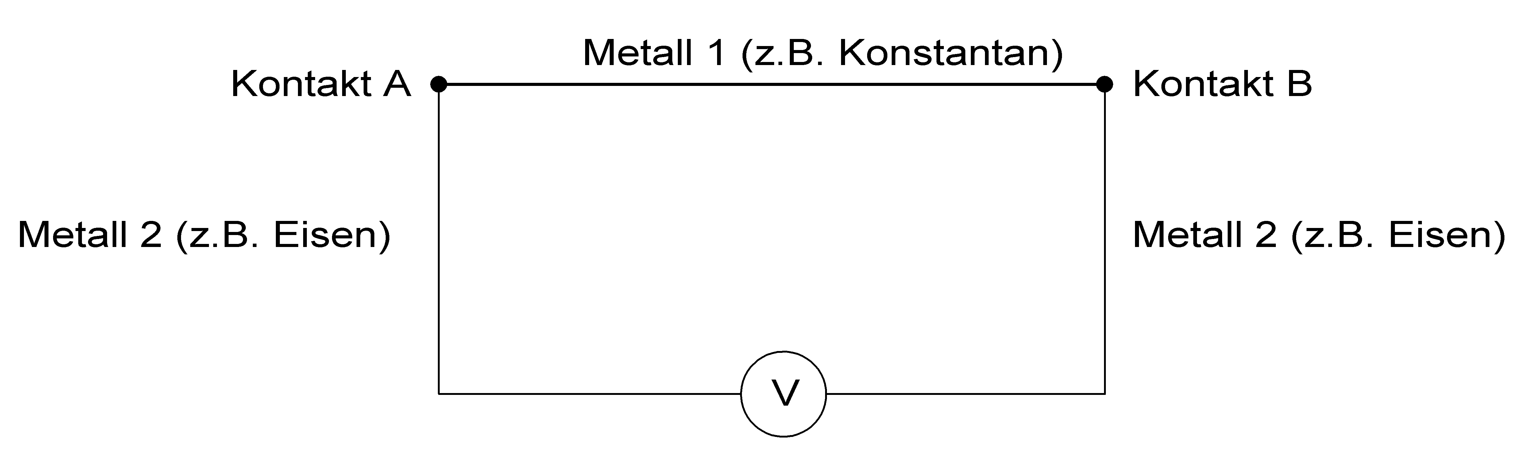 - Etwas höhere Spannung: Konstantan und Eisen