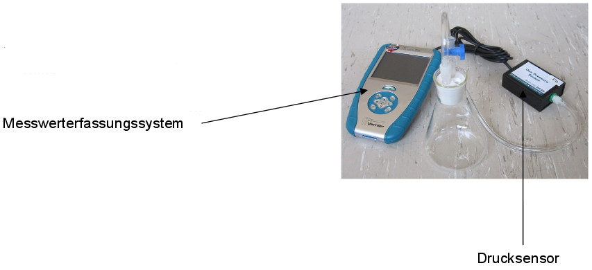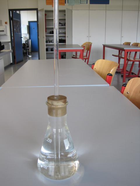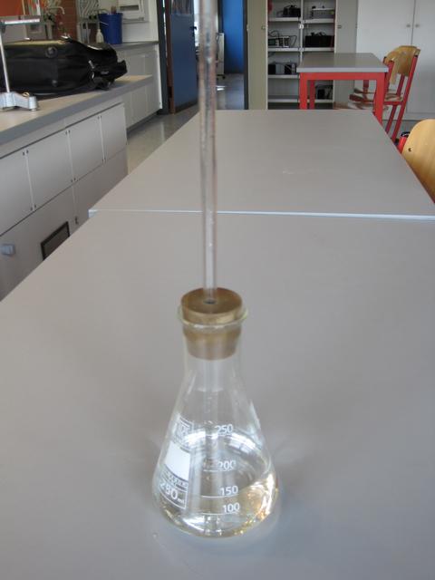 Erlenmeyerkolben vollständig mit Wasser gefüllt, ansonsten gleich wie Versuch 1