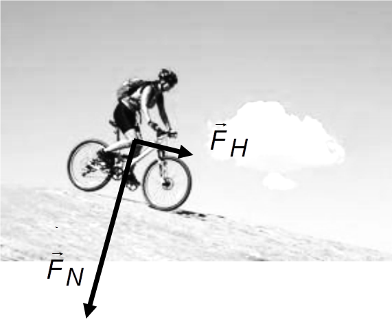 Folglich muss es auch einen Anteil der Gewichtskraft geben, der überhaupt nicht entlang des Hangs wirkt. Diesen Anteil nennt man Normalkraft F N , er wirkt orthogonal zum Untergrund (er gibt also an, wie stark das Fahrrad bzw. die Reifen gegen den Untergrund gedrückt werden).