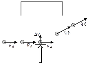 Die Bewegung in Anfangsrichtung bleibt beibehalten, zusätzlich wird eine Bewegung in Stoßrichtung ausgeführt.