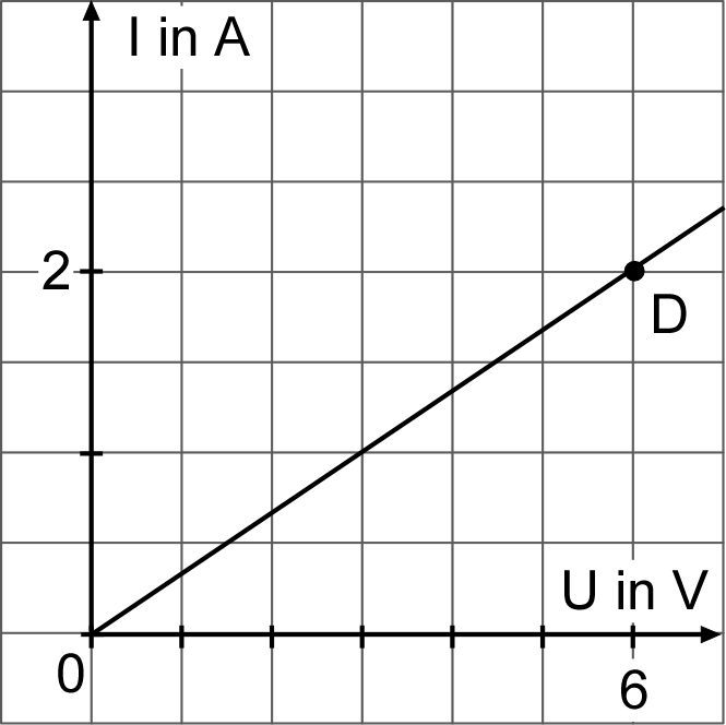 Um die Kennlinie eines elektrischen Leiters aufzunehmen, wird die elektrische Stromstärke bei unterschiedlichen elektrischen Spannungen (Potenzialdifferenzen) gemessen. Bei einer Messung erhält man das folgende U-I-Diagramm: