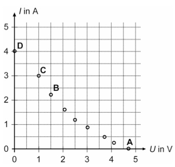 - Bei welchem der Messpunkte A, B, C, D gibt die elektrische Energiequelle die größte Leistung (P = U·I) ab?