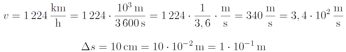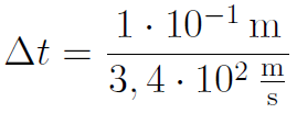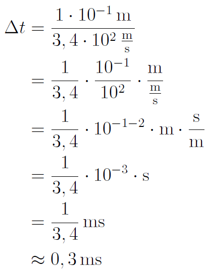 Wie lange braucht Schall (Geschwindigkeit in Luft: 1 224 km/h ) für eine Strecke von 10 cm?