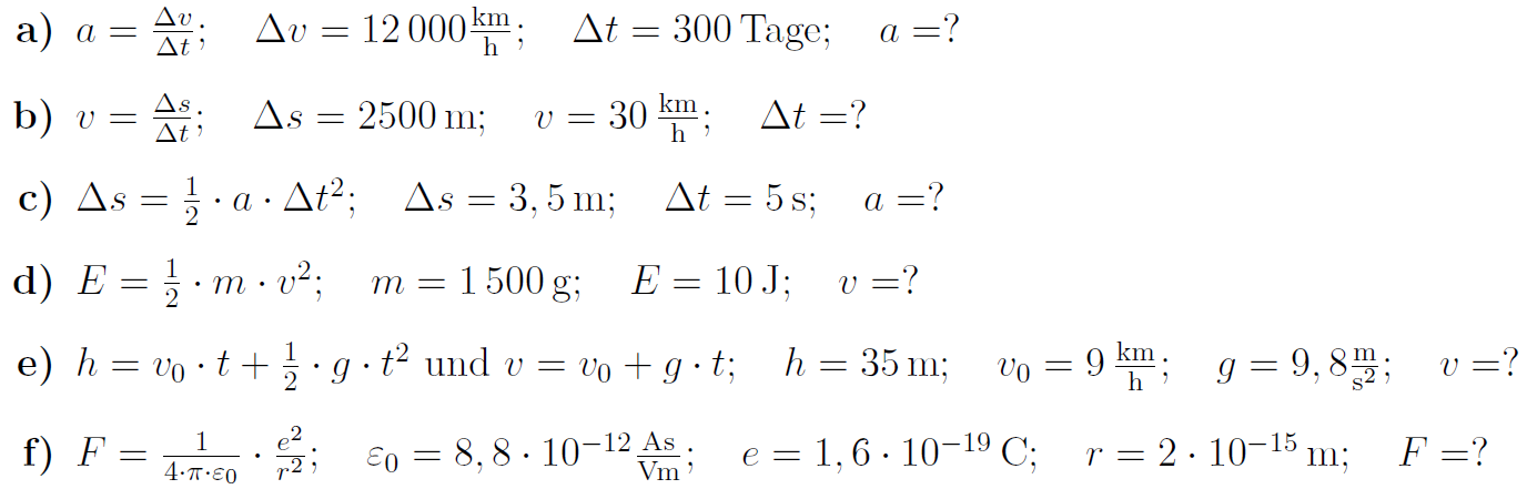 - gesuchte Größe ausrechnen.