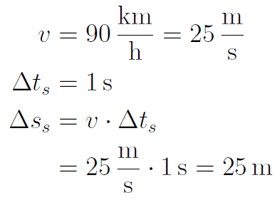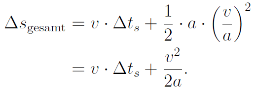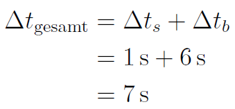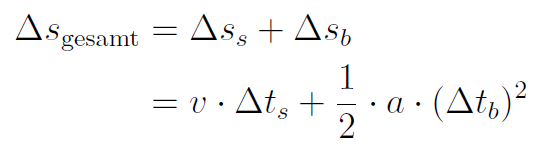 Die Gesamtzeit ist die Summe aus Schrecksekunde und Bremszeit: