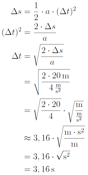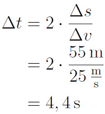 Berechnung der Bremszeit Δ t (Herleitung der Formel wie in Aufgabenteil a):