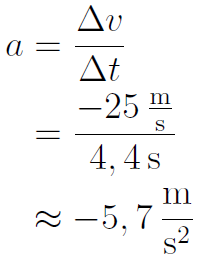 Die Verzögerung des PKW beträgt also ca. -4 m/s 2 .