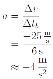 Die Bremszeit beträgt also 6 s. Nun lässt sich die Verzögerung berechnen: