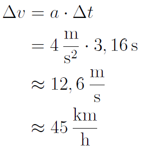 Nun muss die Geschwindigkeit nach 3,16 s berechnet werden: