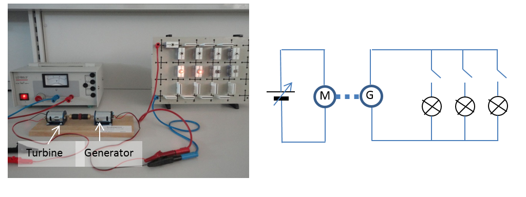 - Den Effekt einer veränderten Drehgeschwindigkeit (Drehfrequenz) des Generators bei einem veränderten Leistungsbedarf erkennen.