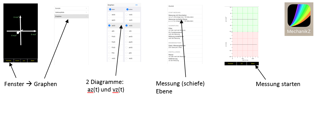 Legen Sie dazu ihr Smartphone auf den Boden des Aufzugs und starten Sie dann die Messung. Vergleichen Sie diese Werte mit dem tatsächlichen Höhenunterschied. Diesen kann man z.B. durch Abzählen der Stufen und Bestimmung der Höhe einer Stufe ermitteln!