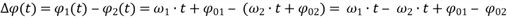 Folglich ändert sich die Phasendifferenz (und damit die Gesamtamplitude) mit der konstanten Kreisfrequenz