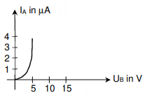 Der Strom IA steigt an, bis UB=4,9V erreicht ist. Bei UB<4,9V geben die (relativ langsamen) Elektronen keine Energie ab; sie werden nur leicht abgelenkt und laufen gegen A an. Diese Stöße sind elastisch d.h. ohne Energieübertragung.