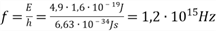 Die Quecksilber-Atome nehmen die Energie E=4,9eV nicht nur auf, sondern geben diese sofort wieder ab, indem sie Photonen emittieren. Diese haben die Frequenz