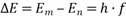 Bohr’sche Frequenzbedingung: Geht ein Elektron von einem Zustand hoher Energie Em in einen Zustand geringerer Energie En über, so gibt es Energie an ein Photon ab (Emission): ![]() Beim Übergang vom niedrigen in ein höheres Energieniveau wird ein Photon der Energie ![]() aufgenommen. |