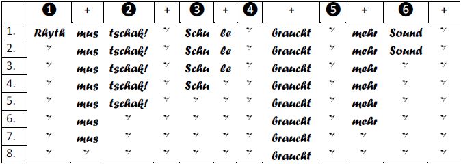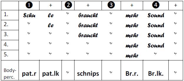 „Music for Pieces of Wood” als Bodypercussion/Sprechmotette