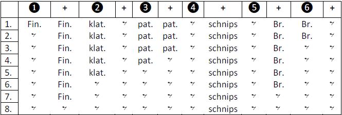 - Notiert eines der Patterns rhythmisch oder mit Tonhöhen.
