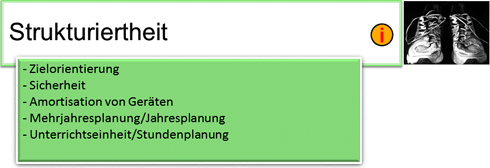 Strukturiertheit ist der kurz- wie langfristig, zeitlich und inhaltlich klar gegliederte Aufbau von Lehr- und Lernprozessen innerhalb eines sachgerechten Organisationsrahmens, bei effizienter Klassenführung sowie klarer Aufgabenstellung,
